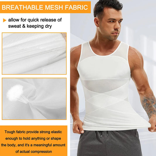 Compression Shirt for Men Slimming Undershirt Body Shaper Tank Top Gynomastica Sleeveless Shapewear Vest Mesh Cross Suit 3XL