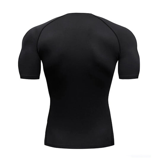Quick-drying Exercise Compression Short Sleeve Summer Gym Running Training T-shirt for Men's Elastic Tight Sportswear Tops S-3XL
