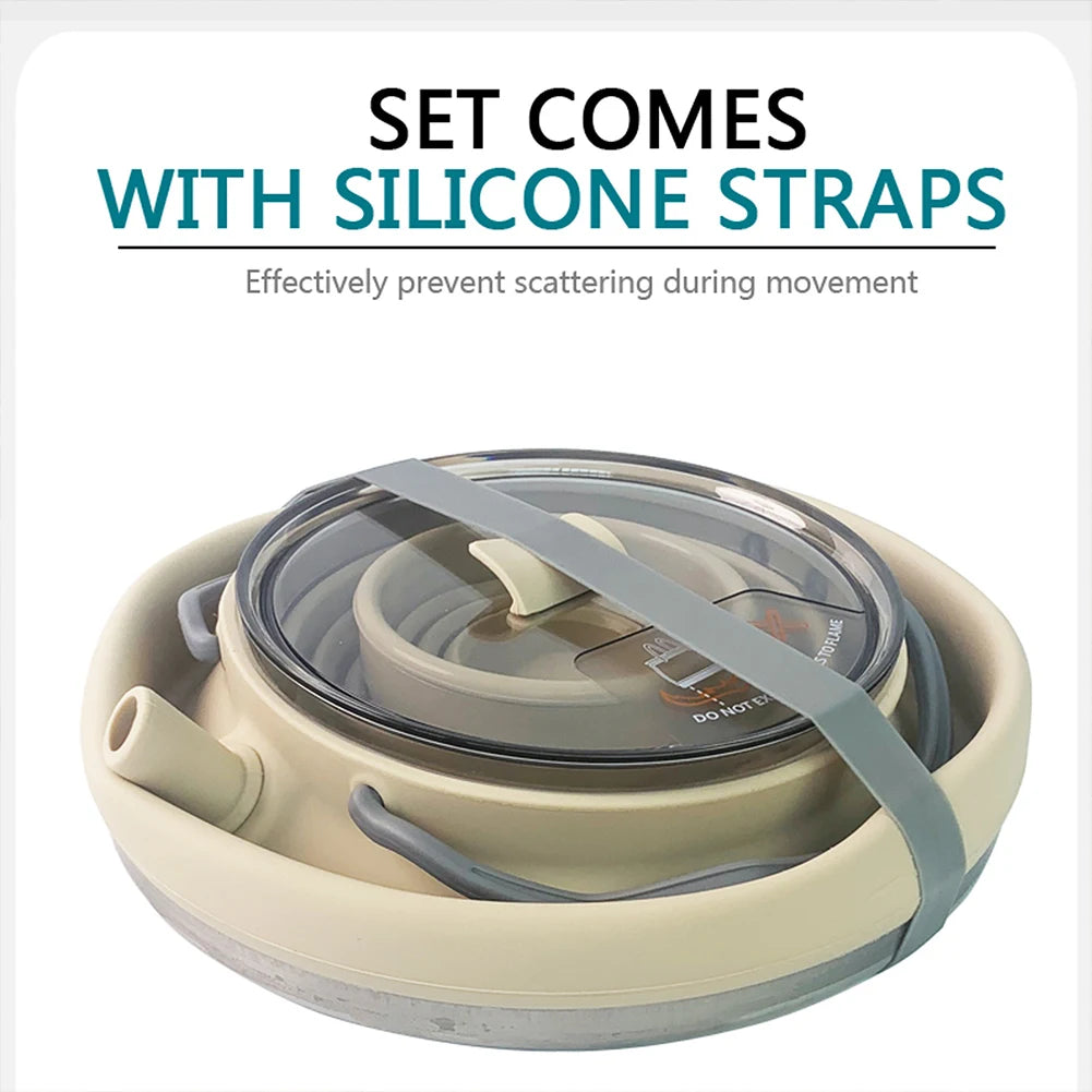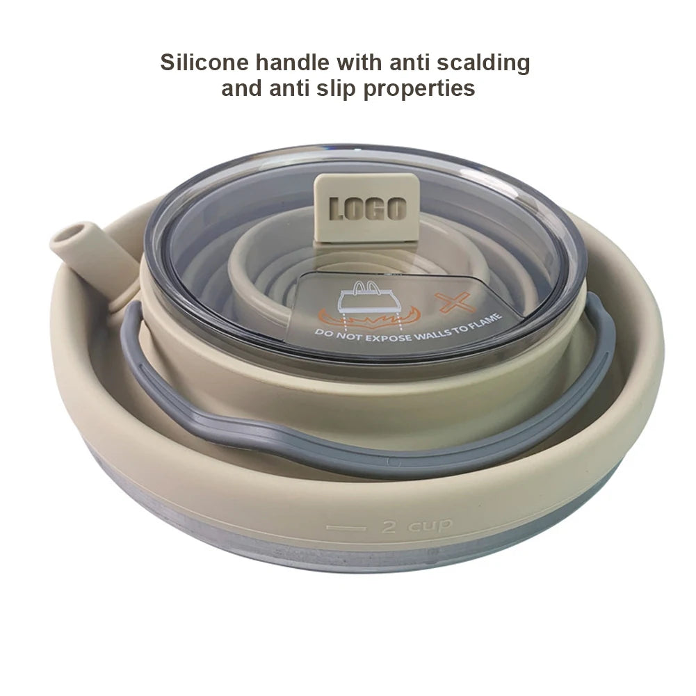 1.5/1L Foldable Silicone Kettle with Handle Outdoor Collapsible Kettle Stainless Steel Bottom Water Pot for Campting Backpacking