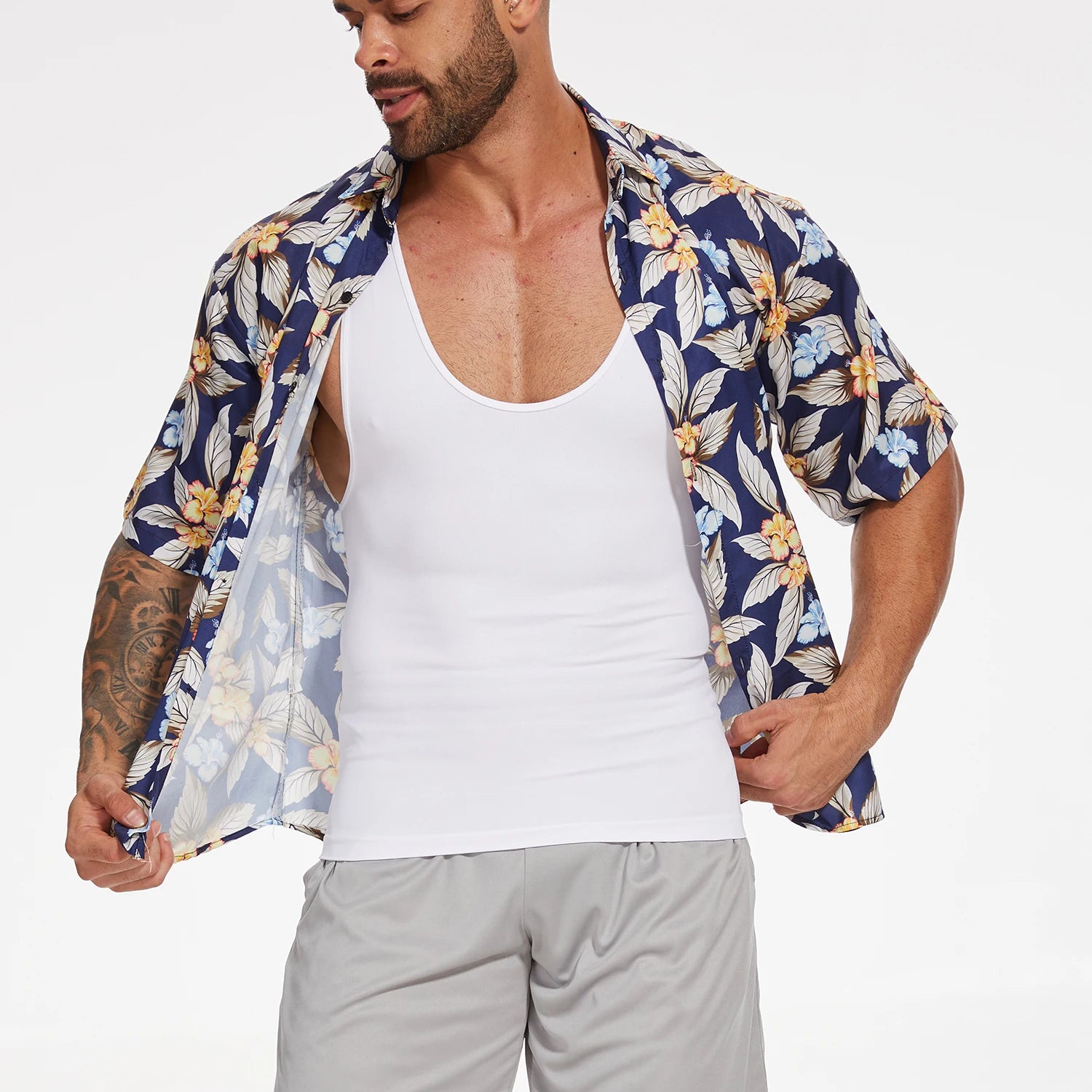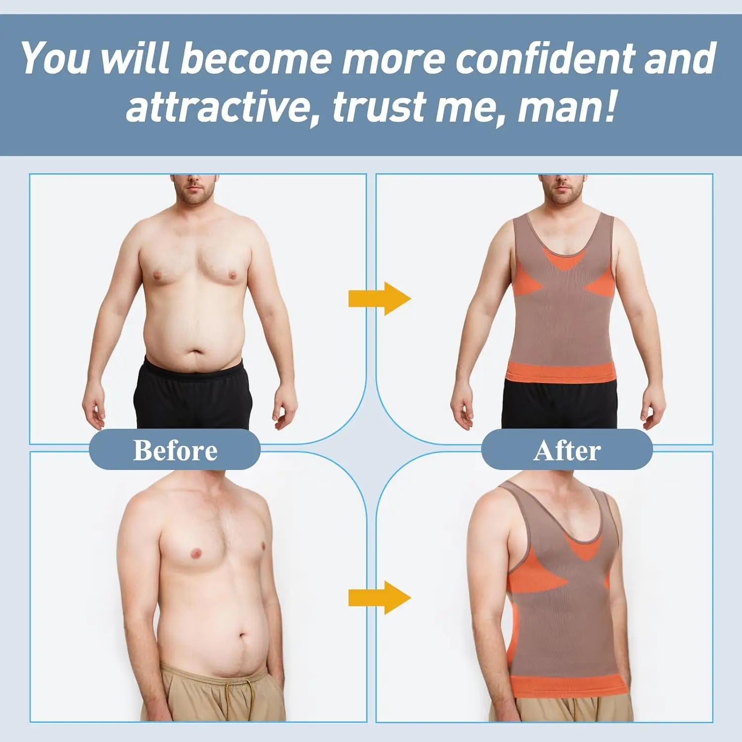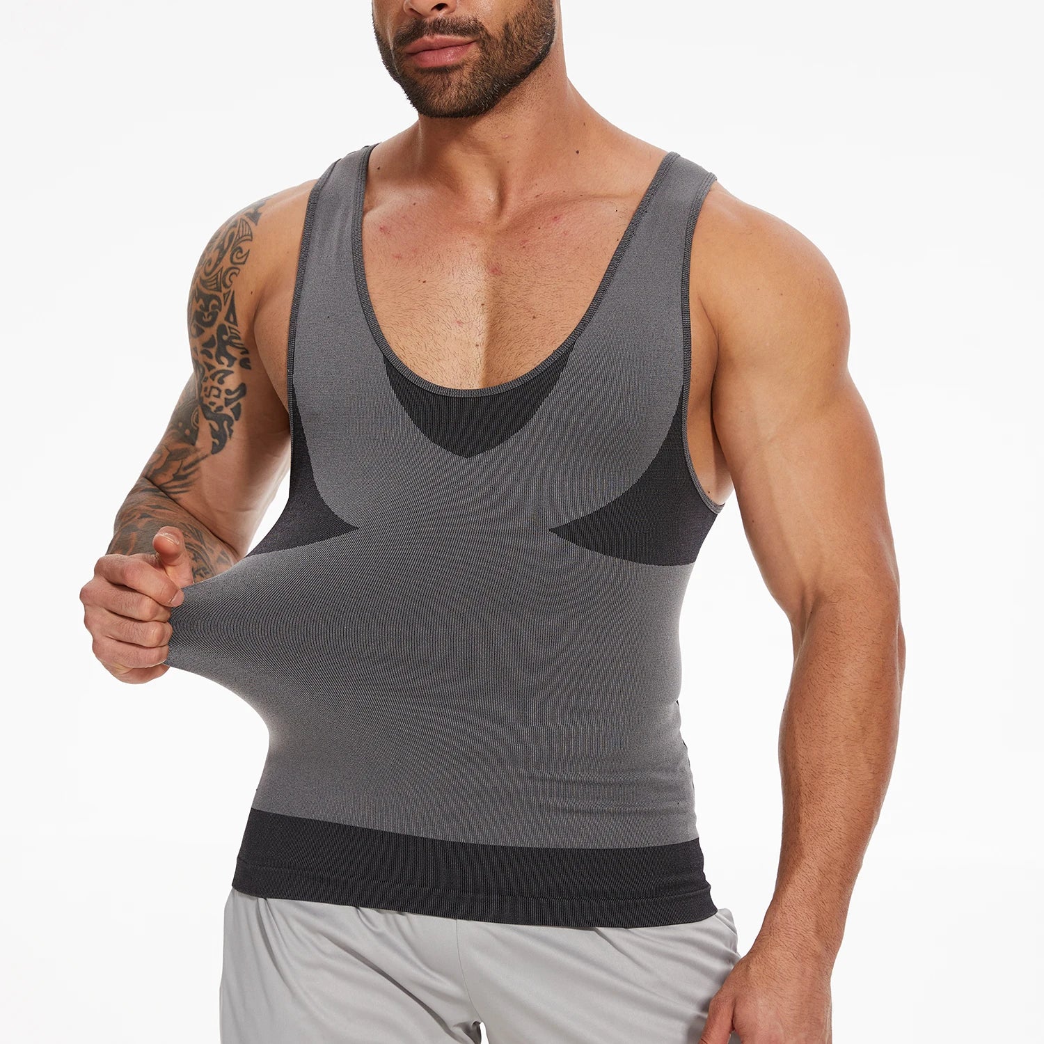 New Men's Shapewear Slimming Body Shaper Horizontal Stripe Compression Band Tummy Control T-Shirt Cross Elastic Workout Top