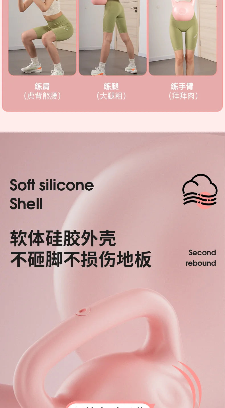 Soft kettlebells, women carrying kettlebells, deep squat strength training, soft bottomed kettlebells